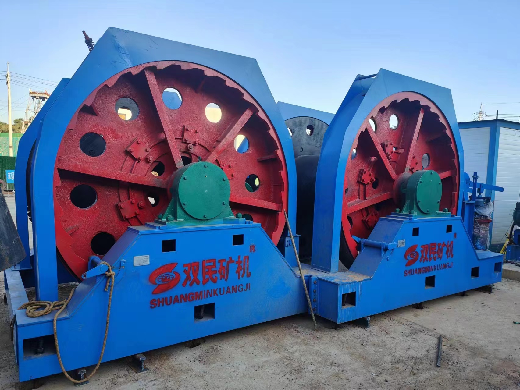 本絞車主要用于煤礦、金屬礦和非金屬礦豎井井筒掘進(jìn)時懸吊吊盤、水泵、水管、注漿泵、風(fēng)筒等掘進(jìn)設(shè)備和張緊穩(wěn)繩,該絞車系雙鋼絲繩懸吊。將減速機(jī)上的差動手把放在差動位置,若張緊穩(wěn)繩,可使兩根穩(wěn)繩的張緊力保持相等;若懸吊水管、注漿管、風(fēng)筒等管類設(shè)備,可保證其被懸吊管類設(shè)備與地面保持垂直的狀態(tài)。如果懸吊吊盤等盤狀設(shè)備,需將其差動手把放在直通位置,才能實(shí)現(xiàn)兩繩繩速的一致。
