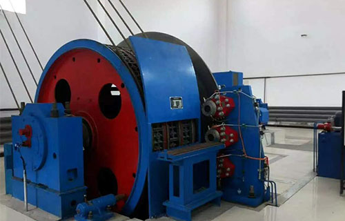 JKMD型多繩摩擦式提升機(jī)采用低速電動(dòng)機(jī)時(shí)可不用減速器,電動(dòng)機(jī)直接與卷筒主軸相連,或?qū)㈦妱?dòng)機(jī)轉(zhuǎn)子裝在卷筒主軸的末端。傳動(dòng)功率大時(shí),可采用2臺(tái)或4臺(tái)電動(dòng)機(jī)同時(shí)驅(qū)動(dòng)。一臺(tái)提升機(jī)的總功率已達(dá)到11600千瓦。制動(dòng)系統(tǒng)是保證提升機(jī)安全運(yùn)行的重要裝置。遇緊急情況時(shí),制動(dòng)系統(tǒng)應(yīng)通過(guò)可調(diào)節(jié)制動(dòng)力矩的液壓系統(tǒng)產(chǎn)生兩級(jí)安全制動(dòng),以保證提升機(jī)及時(shí)停車(chē)又不生產(chǎn)制動(dòng)過(guò)猛現(xiàn)象。交流電動(dòng)機(jī)驅(qū)動(dòng)的提升機(jī)。其制動(dòng)系統(tǒng)還要具有靈敏的制動(dòng)力矩可能性能,以準(zhǔn)確控制提升機(jī)在臨近通車(chē)點(diǎn)時(shí)的運(yùn)行速度。