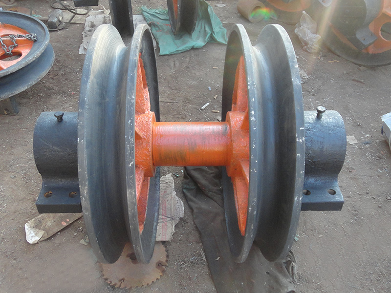 3、雙槽懸吊天輪采用繩輪與軸承座可調(diào)型式,使用時根據(jù)實際情況進行選用,還可根據(jù)情況,另行組合設(shè)計,可不受規(guī)定品種和可調(diào)。