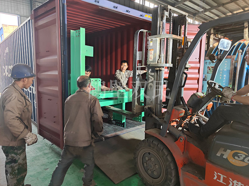 工人師傅將礦用絞車底架拆卸完成,并順利的裝入了集裝箱內(nèi)。