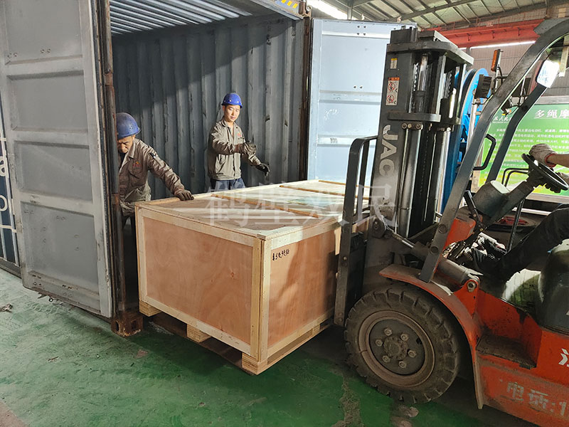 工人師傅將礦用提升絞車裝箱完成之后,由卡車運送集裝箱至港口,順利發(fā)往菲律賓客戶礦區(qū)。