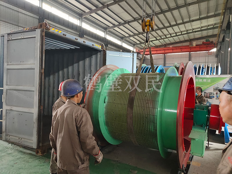 就剩下卷筒了,經(jīng)過幾次努力,終于將卷筒裝入集裝箱內(nèi)。完成了本次礦用提升絞車的裝箱工作。